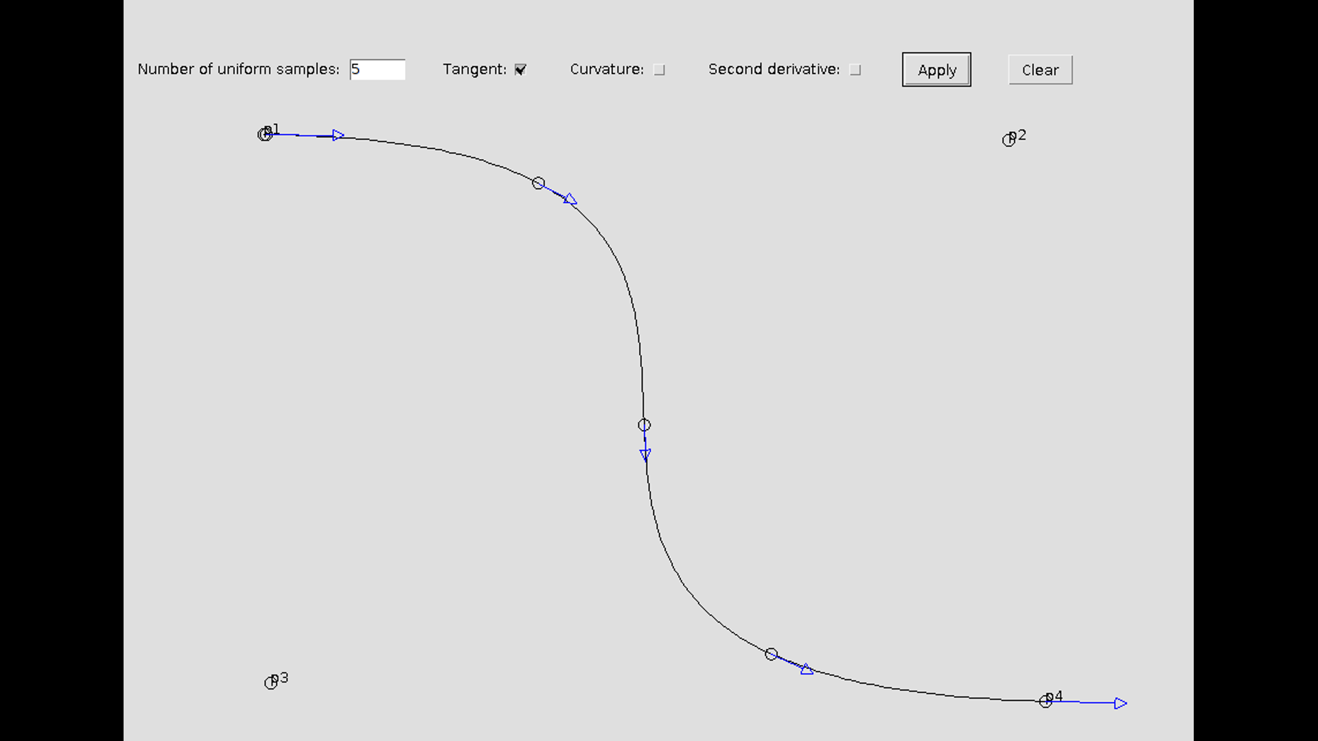 Written in Processing to display Bezier Curve of any degree by specifying its controlling points on a drawing area