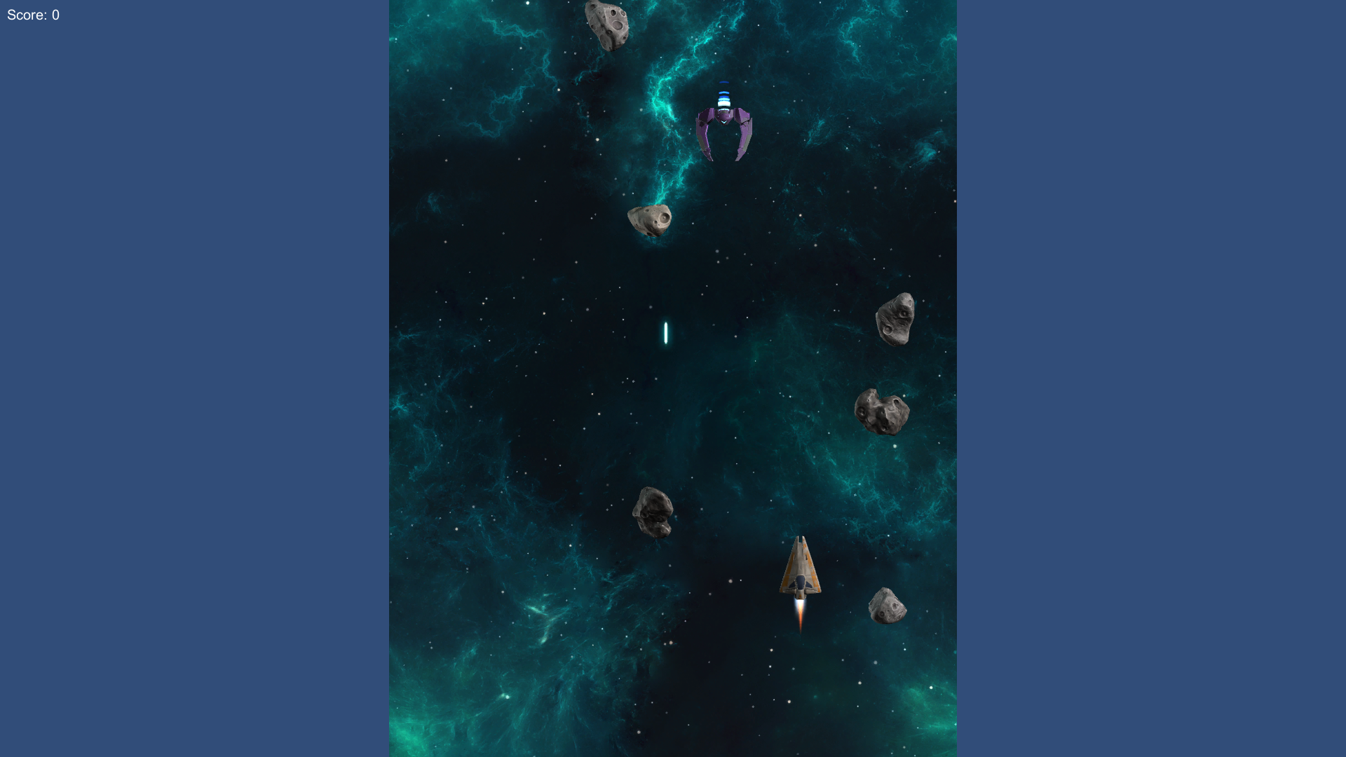 2.5D space shooter with asteroids and enemy UFOs